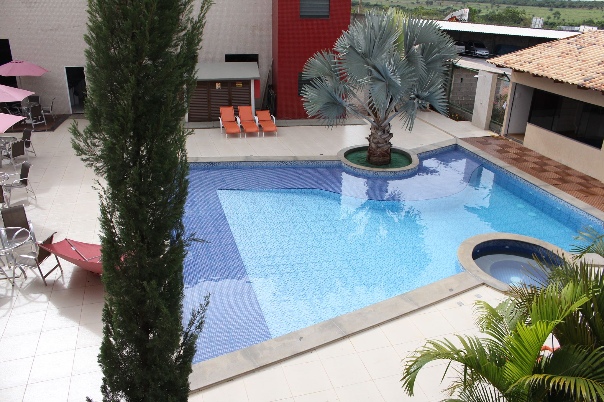 Em todas as diarias, serviço de camareira estacionamento coberto, café da manhã piscina, academia e internet (wi-fi).